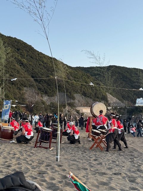 恒例の年越しの送り火を始め、日和佐冬まつりでの日和佐太鼓初日の出雷舞前のお祓いとご奉仕させていただきました。